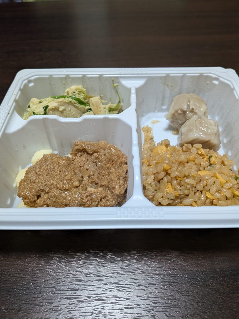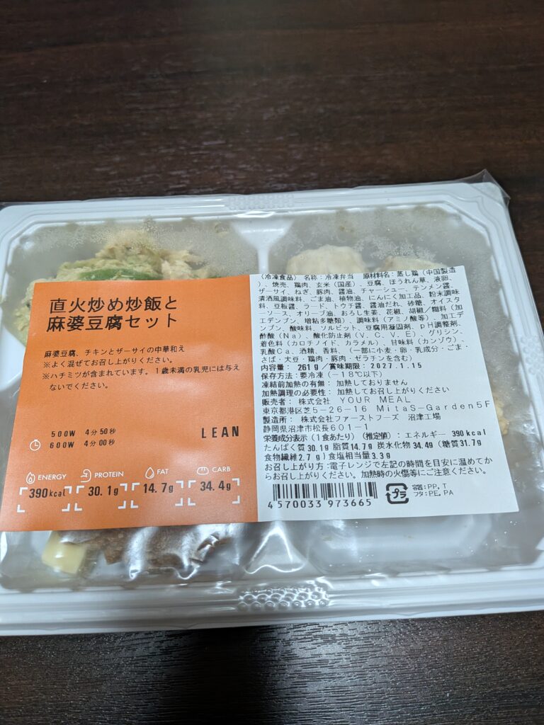 ・麻婆豆腐: 本格的なピリ辛で、炒飯が進む味付け。表示の600w4分でチンしましたが、お豆腐が少し冷たいので熱々がお好みの方は、+20秒でも良いかも知れません。最後は炒飯に乗せて食べたら相性抜群でした!
